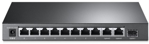 - 8 portów RJ45 10/100 Mb/s, 2 gigabitowe porty RJ45, 1 gigabitowy port SFP.