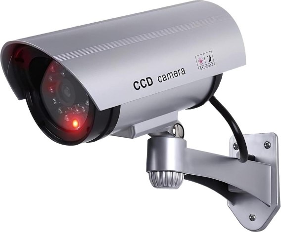 - W zestawie wraz z atrapą kamery znajduje się naklejka informująca o "monitoringu"