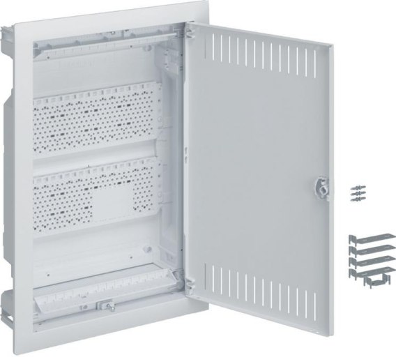 Rozdzielnica podtynkowa multimedialna Hager volta VU24NWB to idealne rozwiązanie do organizacji okablowania i urządzeń multimedialnych w domu lub mieszkaniu. Wyposażona w perforowane płyty montażowe. Cechuje ją łatwość montażu, posiada wbudowaną poziomicę, ramkę maskującą nierówności tynku oraz elementy mocujące. Zapewnia maksymalne bezpieczeństwo (II klasa ochronności, IP30). Dostarczana z stalowymi wentylowanymi drzwiami.