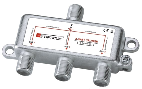 Rozgałęźnik trzykrotny przeznaczony dla DVB-T/T2, DVB-S2, do użytku wewnętrznego.